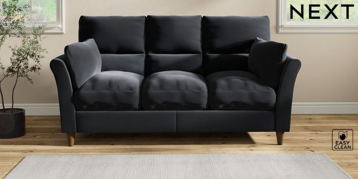 7.2.10 Hartley Highback Relaxed Sit 3 Cushion 3 Seater Sofa Plush Velvet Easy Clean Charcoal Grey Low Conical - Mid | Made Click here to use our website with more accessibility support, for example screen readers