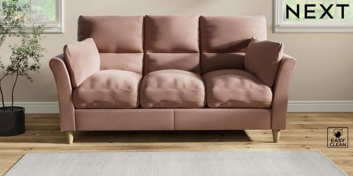 7.2.10 Hartley Highback Relaxed Sit 3 Cushion 3 Seater Sofa Plush Velvet Easy Clean Mid Natural Low Conical - Light | Made Click here to use our website with more accessibility support, for example screen readers