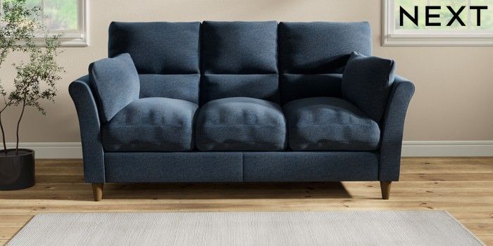 7.2.10 Hartley Highback Relaxed Sit 3 Cushion 3 Seater Sofa Ripple Chenille Dark Blue Low Conical - Mid | Made Click here to use our website with more accessibility support, for example screen readers