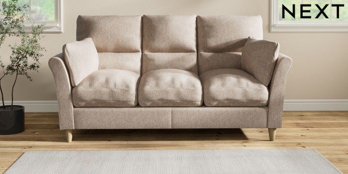 7.2.10 Hartley Highback Relaxed Sit 3 Cushion 3 Seater Sofa Tweedy Chenille Mid Natural Low Conical - Light | Made Click here to use our website with more accessibility support, for example screen readers