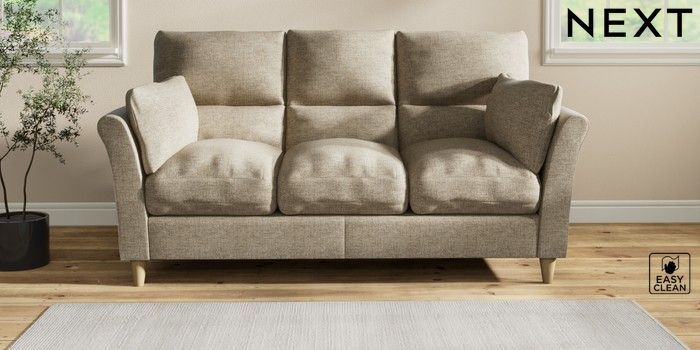 7.2.10 Hartley Highback Relaxed Sit 3 Cushion 3 Seater Sofa Woven Chenille Easy Clean Mid Natural Low Conical - Light | Made Click here to use our website with more accessibility support, for example screen readers