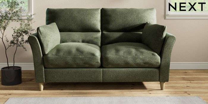 7.2.10 Hartley Highback Relaxed Sit 3 Seater Small Sofa Boucle Chenille Dark Moss Green Low Conical - Light | Made Click here to use our website with more accessibility support, for example screen readers