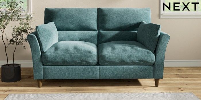 7.2.10 Hartley Highback Relaxed Sit 3 Seater Small Sofa Chunky Chenille Mid Teal Green Low Conical - Mid | Made Click here to use our website with more accessibility support, for example screen readers