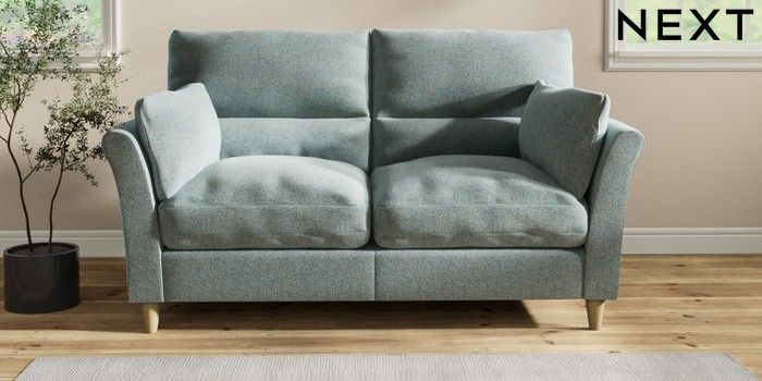 7.2.10 Hartley Highback Relaxed Sit 3 Seater Small Sofa Chunky Marl Mid Blue Low Conical - Light | Made Click here to use our website with more accessibility support, for example screen readers