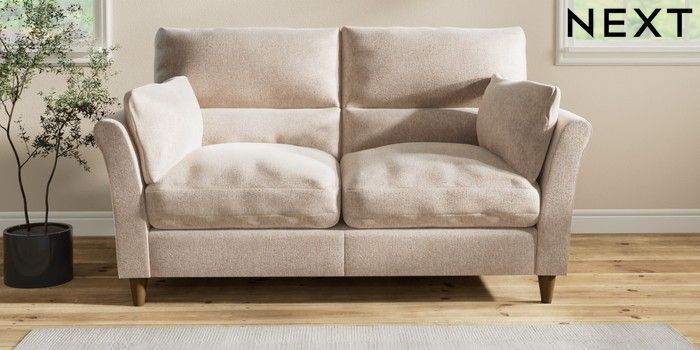 7.2.10 Hartley Highback Relaxed Sit 3 Seater Small Sofa Cotswold Chenille Light Natural Low Conical - Mid | Made Click here to use our website with more accessibility support, for example screen readers