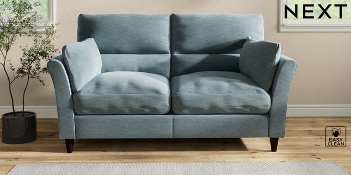 7.2.10 Hartley Highback Relaxed Sit 3 Seater Small Sofa Fine Chenille Easy Clean Mid Blue Low Conical - Dark | Made Click here to use our website with more accessibility support, for example screen readers