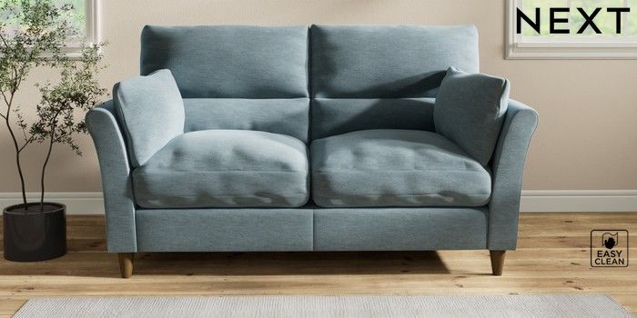 7.2.10 Hartley Highback Relaxed Sit 3 Seater Small Sofa Fine Chenille Easy Clean Mid Blue Low Conical - Mid | Made Click here to use our website with more accessibility support, for example screen readers