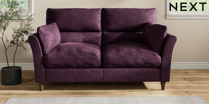 7.2.10 Hartley Highback Relaxed Sit 3 Seater Small Sofa Plush Chenille Dark Plum Purple Low Conical - Mid | Made Click here to use our website with more accessibility support, for example screen readers