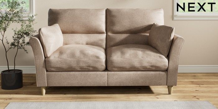 7.2.10 Hartley Highback Relaxed Sit 3 Seater Small Sofa Plush Chenille Mid Natural Low Conical - Light | Made Click here to use our website with more accessibility support, for example screen readers