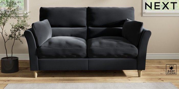 7.2.10 Hartley Highback Relaxed Sit 3 Seater Small Sofa Plush Velvet Easy Clean Charcoal Grey Low Conical - Light | Made Click here to use our website with more accessibility support, for example screen readers