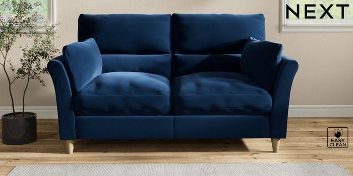 7.2.10 Hartley Highback Relaxed Sit 3 Seater Small Sofa Plush Velvet Easy Clean Navy Blue Low Conical - Light | Made Click here to use our website with more accessibility support, for example screen readers