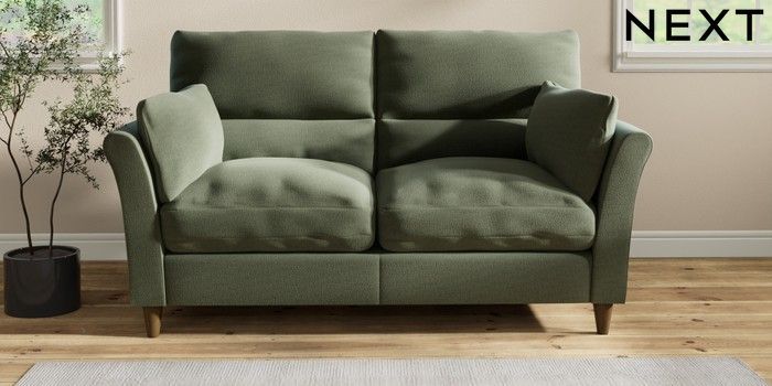 7.2.10 Hartley Highback Relaxed Sit 3 Seater Small Sofa Relaxed Linen Look Dark Green Low Conical - Mid | Made Click here to use our website with more accessibility support, for example screen readers