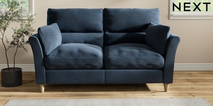 7.2.10 Hartley Highback Relaxed Sit 3 Seater Small Sofa Ripple Chenille Dark Blue Low Conical - Light | Made Click here to use our website with more accessibility support, for example screen readers