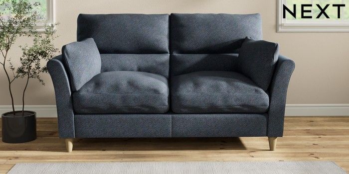 7.2.10 Hartley Highback Relaxed Sit 3 Seater Small Sofa Tweedy Chenille Navy Blue Low Conical - Light | Made Click here to use our website with more accessibility support, for example screen readers