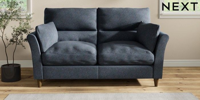 7.2.10 Hartley Highback Relaxed Sit 3 Seater Small Sofa Tweedy Chenille Navy Blue Low Conical - Mid | Made Click here to use our website with more accessibility support, for example screen readers