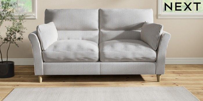 7.2.10 Hartley Highback Relaxed Sit 3 Seater Sofa Chenille Stripe Slate Blue Low Conical - Light | Made Click here to use our website with more accessibility support, for example screen readers