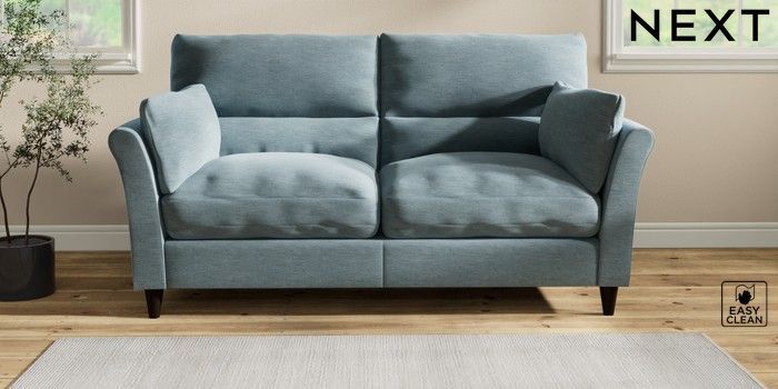 7.2.10 Hartley Highback Relaxed Sit 3 Seater Sofa Fine Chenille Easy Clean Mid Blue Low Conical - Dark | Made Click here to use our website with more accessibility support, for example screen readers