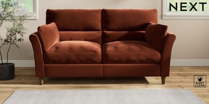 7.2.10 Hartley Highback Relaxed Sit 3 Seater Sofa Plush Velvet Easy Clean Ginger Orange Low Conical - Mid | Made Click here to use our website with more accessibility support, for example screen readers