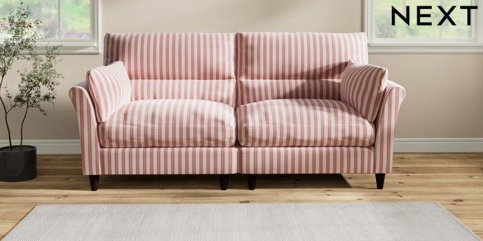 7.2.10 Hartley Highback Relaxed Sit 4 Seater Sofa Bold Chenille Stripe Dark Pink Low Conical - Dark | Made Click here to use our website with more accessibility support, for example screen readers