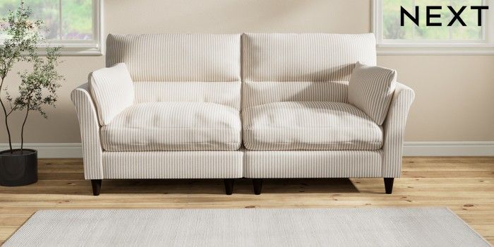 7.2.10 Hartley Highback Relaxed Sit 4 Seater Sofa Chenille Stripe Natural Low Conical - Dark | Made Click here to use our website with more accessibility support, for example screen readers