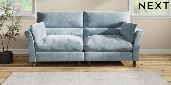 7.2.10 Hartley Highback Relaxed Sit 4 Seater Sofa Plush Chenille Light Blue Low Conical - Mid | Made Click here to use our website with more accessibility support, for example screen readers