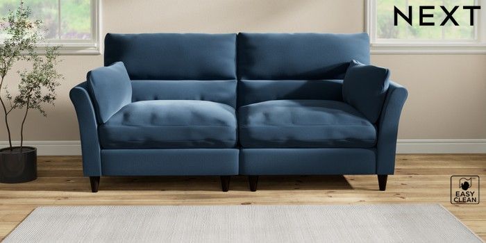 7.2.10 Hartley Highback Relaxed Sit 4 Seater Sofa Plush Velvet Easy Clean Airforce Blue Low Conical - Dark | Made Click here to use our website with more accessibility support, for example screen readers
