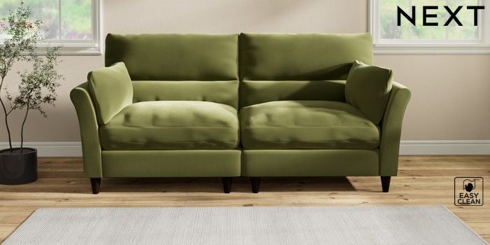 7.2.10 Hartley Highback Relaxed Sit 4 Seater Sofa Plush Velvet Easy Clean Mid Olive Green Low Conical - Dark | Made Click here to use our website with more accessibility support, for example screen readers