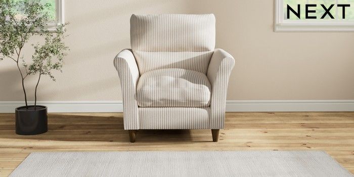 7.2.10 Hartley Highback Relaxed Sit Armchair Chenille Stripe Natural Low Conical - Mid | Made Click here to use our website with more accessibility support, for example screen readers