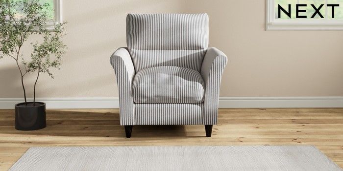 7.2.10 Hartley Highback Relaxed Sit Armchair Chenille Stripe Slate Blue Low Conical - Dark | Made Click here to use our website with more accessibility support, for example screen readers