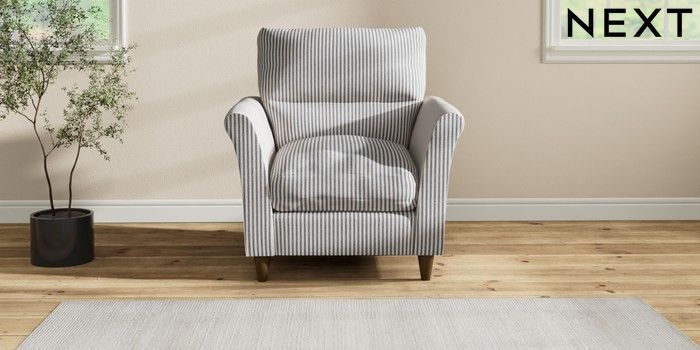 7.2.10 Hartley Highback Relaxed Sit Armchair Chenille Stripe Slate Blue Low Conical - Mid | Made Click here to use our website with more accessibility support, for example screen readers