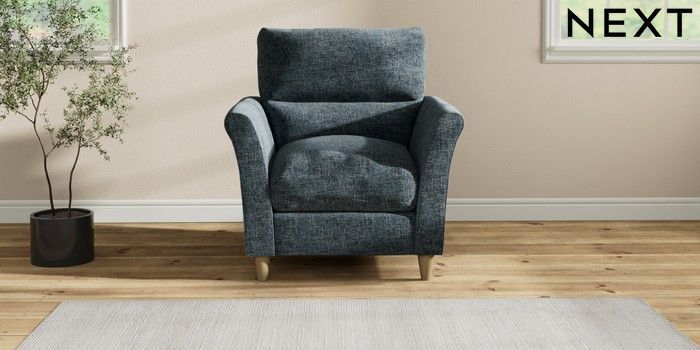 7.2.10 Hartley Highback Relaxed Sit Armchair Chunky Chenille Dark Navy Blue Low Conical - Light | Made Click here to use our website with more accessibility support, for example screen readers