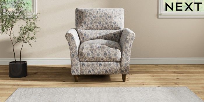 7.2.10 Hartley Highback Relaxed Sit Armchair Relaxed Linen Look Print Woodblock Floral Blue Low Conical - Mid | Made Click here to use our website with more accessibility support, for example screen readers