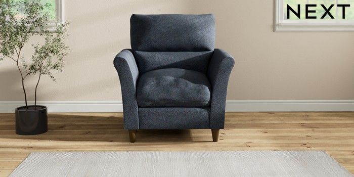 7.2.10 Hartley Highback Relaxed Sit Armchair Tweedy Chenille Navy Blue Low Conical - Mid | Made Click here to use our website with more accessibility support, for example screen readers