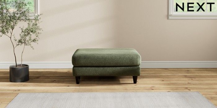 7.2.10 Hartley Highback Relaxed Sit Footstool Boucle Chenille Dark Moss Green Low Conical - Dark | Made Click here to use our website with more accessibility support, for example screen readers