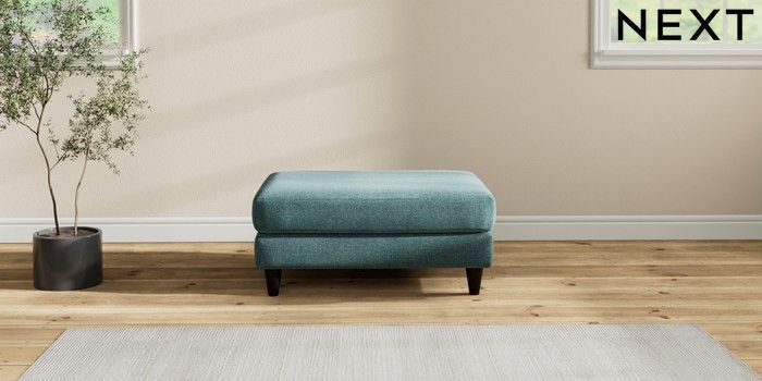 7.2.10 Hartley Highback Relaxed Sit Footstool Chunky Chenille Mid Teal Green Low Conical - Dark | Made Click here to use our website with more accessibility support, for example screen readers