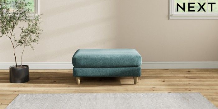 7.2.10 Hartley Highback Relaxed Sit Footstool Chunky Chenille Mid Teal Green Low Conical - Light | Made Click here to use our website with more accessibility support, for example screen readers