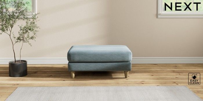 7.2.10 Hartley Highback Relaxed Sit Footstool Fine Chenille Easy Clean Mid Blue Low Conical - Light | Made Click here to use our website with more accessibility support, for example screen readers