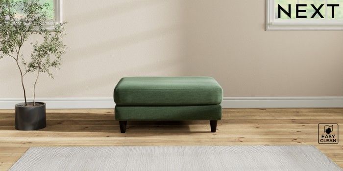 7.2.10 Hartley Highback Relaxed Sit Footstool Fine Chenille Easy Clean Mid Khaki Green Low Conical - Dark | Made Click here to use our website with more accessibility support, for example screen readers