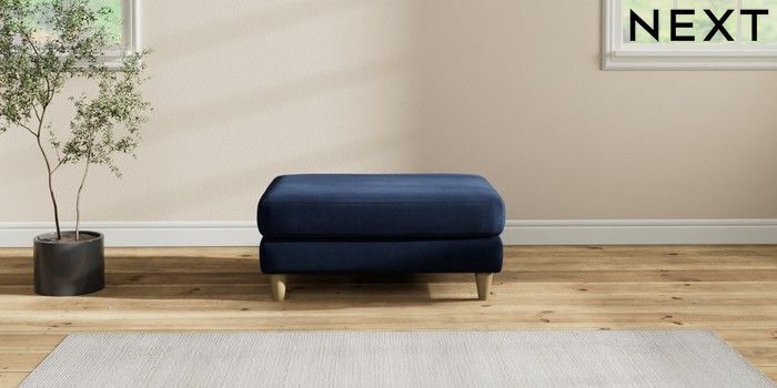 7.2.10 Hartley Highback Relaxed Sit Footstool Luxe Chenille Navy Blue Low Conical - Light | Made Click here to use our website with more accessibility support, for example screen readers