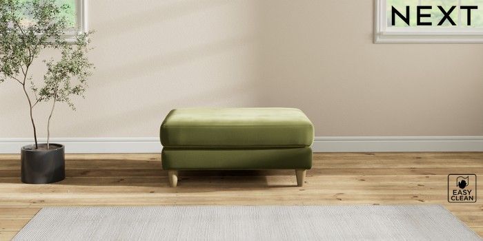 7.2.10 Hartley Highback Relaxed Sit Footstool Plush Velvet Easy Clean Mid Olive Green Low Conical - Light | Made Click here to use our website with more accessibility support, for example screen readers