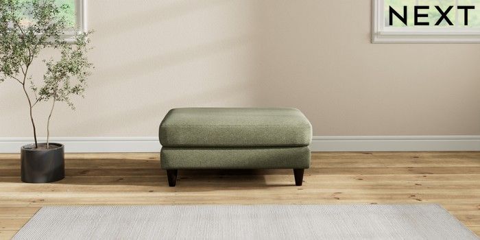 7.2.10 Hartley Highback Relaxed Sit Footstool Tweedy Chenille Mid Moss Green Low Conical - Dark | Made Click here to use our website with more accessibility support, for example screen readers