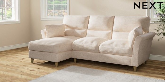 7.2.10 Hartley Highback Relaxed Sit Medium Sofa Chaise - Left Hand Boucle Chenille Oyster Low Conical - Light | Made Click here to use our website with more accessibility support, for example screen readers