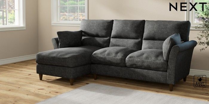 7.2.10 Hartley Highback Relaxed Sit Medium Sofa Chaise - Left Hand Boucle Weave Easy Clean Charcoal Grey Low Conical - Mid | Made Click here to use our website with more accessibility support, for example screen readers