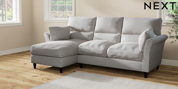 7.2.10 Hartley Highback Relaxed Sit Medium Sofa Chaise - Left Hand Chenille Stripe Slate Blue Low Conical - Dark | Made Click here to use our website with more accessibility support, for example screen readers