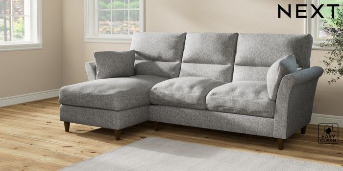7.2.10 Hartley Highback Relaxed Sit Medium Sofa Chaise - Left Hand Chunky Boucle Easy Clean Light Grey Low Conical - Mid | Made Click here to use our website with more accessibility support, for example screen readers