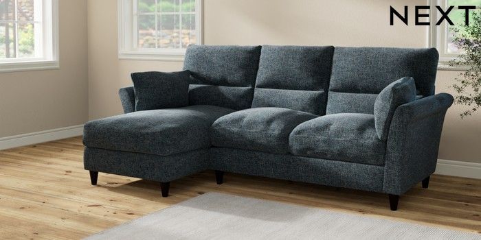 7.2.10 Hartley Highback Relaxed Sit Medium Sofa Chaise - Left Hand Chunky Chenille Dark Navy Blue Low Conical - Dark | Made Click here to use our website with more accessibility support, for example screen readers