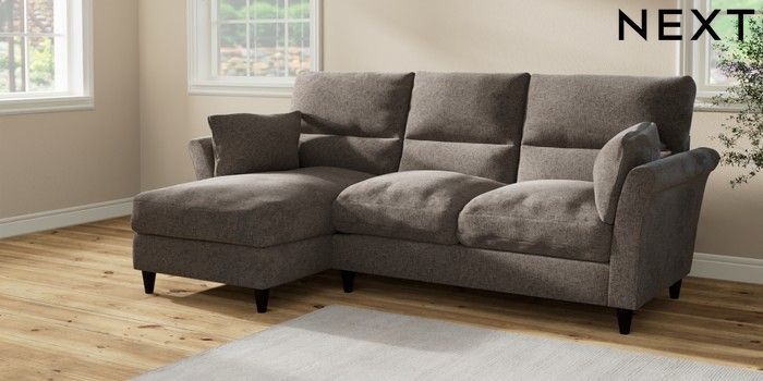 7.2.10 Hartley Highback Relaxed Sit Medium Sofa Chaise - Left Hand Chunky Chenille Mink Brown Low Conical - Dark | Made Click here to use our website with more accessibility support, for example screen readers