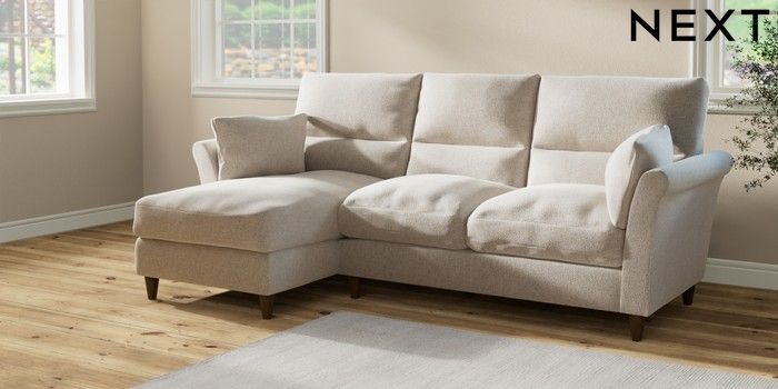 7.2.10 Hartley Highback Relaxed Sit Medium Sofa Chaise - Left Hand Chunky Marl Oyster Low Conical - Mid | Made Click here to use our website with more accessibility support, for example screen readers