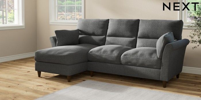 7.2.10 Hartley Highback Relaxed Sit Medium Sofa Chaise - Left Hand Chunky Texture Dark Grey Low Conical - Mid | Made Click here to use our website with more accessibility support, for example screen readers