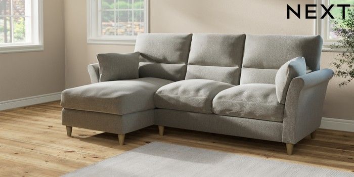 7.2.10 Hartley Highback Relaxed Sit Medium Sofa Chaise - Left Hand Chunky Texture Dove Low Conical - Light | Made Click here to use our website with more accessibility support, for example screen readers
